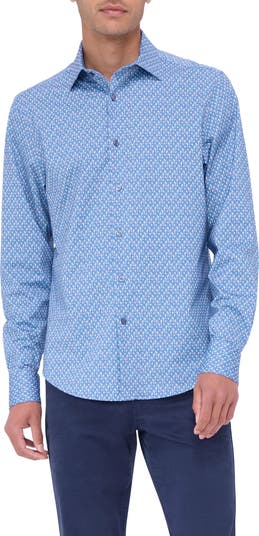 Bugatchi Jimmy OoohCotton<sup>®</sup> Abstract Print Button-Up Shirt, Main, color, Dusty Blue