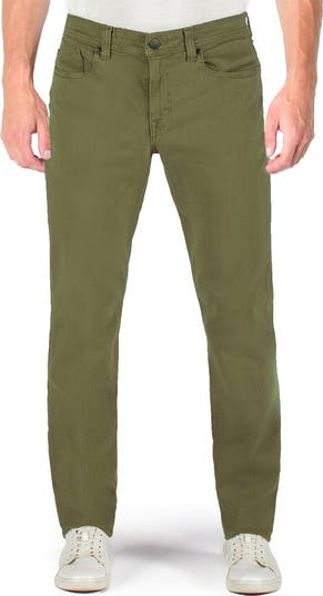 Versatile and comfortable, these army-green jeans feature slim-cut straight legs and lightweight Italian stretch denim with a sueded feel.