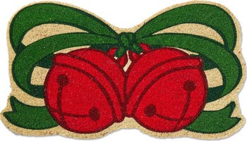 Jingle Bells Shaped Coir Door Mat Christmas Red Easy Clean