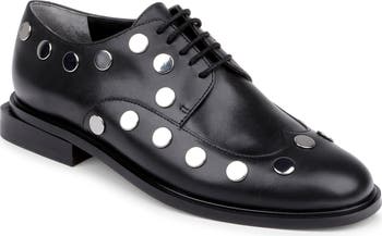 Polished stud hardware accentuates the streamlined silhouette of this lace-up flat.