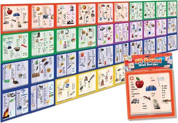 44 Sound Wall Border provides examples of different ways to spell the different 44 sounds of the English language. Spelling patterns are also marked according to their frequency (common, sometimes or rare). Create a display so students can quickly see the 44 sounds and the different ways that they are represented.