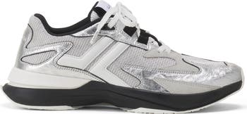 This JLA runner sneaker draws its inspiration from the running shoes of the 70s and its name is a nod to the healthy lifestyle of Los Angeles. The retro design features one of the first logos created by Jeanne Lanvin for her legendary boutique on Rue du Faubourg Saint-Honoré. The lightweight, flexible construction provides optimum support. This collection features a version in crinkled metallic leather, with a contemporary look.