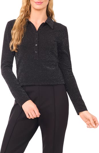 Show off your insouciant side in a trim and stretchy polo enhanced with metallic sparkle for a glam touch you can enjoy anyday.