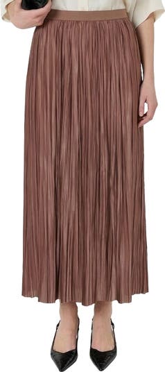 Crafted from a satiny and pleated material, this skirt boasts a luminous drape that catches the light. Its fluid fabric follows movement, creating a silhouette that is both airy and sophisticated.