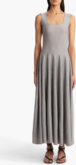 Knit from fine merino wool, this sleeveless dress with a square neck and back is engineered with a sleek bodice that flows seamlessly into a voluminous skirt.