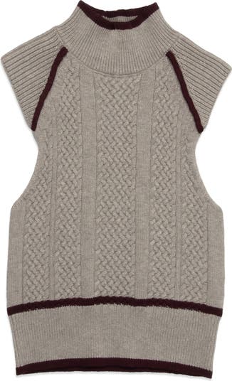 Contrast details further the old-school sophistication of this mixed-stitch vest topped with a mock neckline.