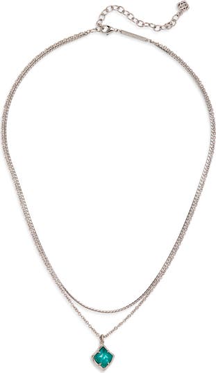 An organically shaped pendant with colorful inlay serves as the captivating focal point of this mixed-chain necklace that offers a layered look with one-and-done ease.