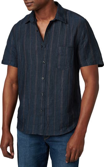 Sleek stripes detail this weekend-ready button-up cut for a relaxed fit from cool, breathable linen.