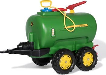 This giant twin axle Tanker is suitable for all the larger rolly Tractors. It has a top mounted filling lid with a removable Pump. Pump the handle to activate the hand held Spray Nozzle. Incluces a rear tap that allows water to be released in a fan spreading motion. Tanker holds up to 5 gallons of liquid.