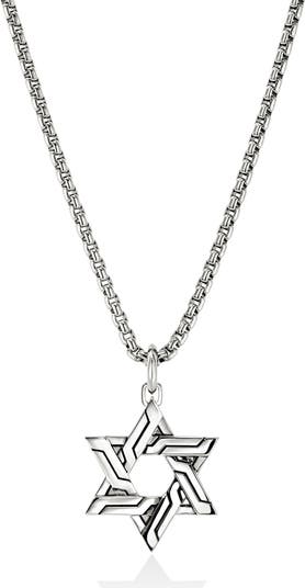 A meaningful addition to your collection or a gift for someone special, this sterling silver box-chain necklace is anchored by an artfully hand-carved Star of David pendant.