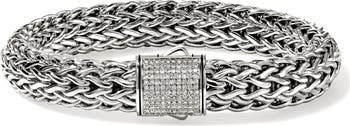 The art of Balinese chain weaving is masterfully displayed on this handcrafted chain bracelet secured with a push clasp illuminated with pavé diamonds.