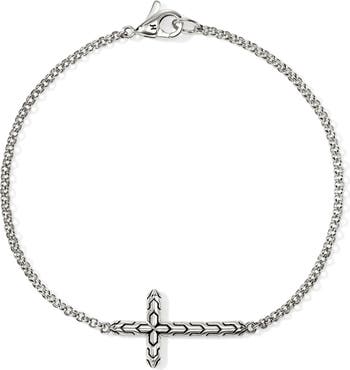 A meaningful addition to your collection or a gift for someone special, this sterling silver chain bracelet is accented with a hand-carved cross station.