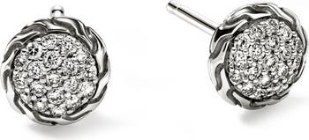 John Hardy's signature carved chain motif frames glittering pavé diamonds on these essential stud earrings handcrafted using traditional Balinese techniques.