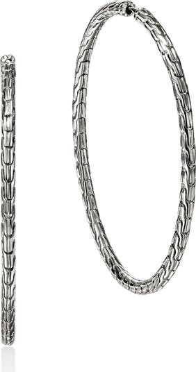 Hardy's signature hand-carved chain motif lends artful texture to these sterling silver hoop earrings.