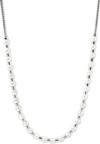 Polished sterling silver heishi beads alternate with freshwater pearls on this necklace handcrafted using traditional Balinese jewelry-making techniques.