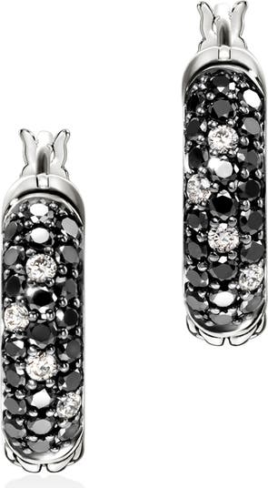 Sparkle pavé diamonds and the label's signature carvings shape these refined hoop earrings set in sterling silver.