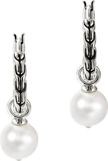 Signature hand-engraved designs created by Balinese artisans distinguish these sterling silver hoops finished with lustrous freshwater pearl drops.
