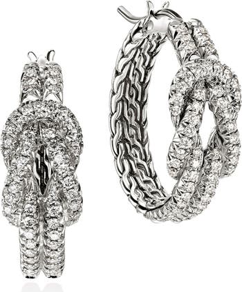 The bonds of love manifest in sculptural, diamond-covered knots at the center of these handcrafted hoop earrings.