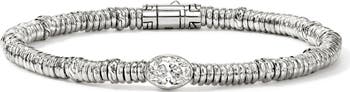 Hand-carved beads lead to a lab-grown diamond pendant that adds effervescent spark to this sterling silver bracelet.