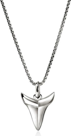 Pavé diamonds lend a splash of sparkle to this handcrafted sterling silver shark tooth pendant necklace inspired by treasures of the sea.