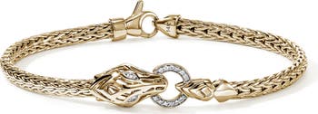 A diamond-eyed dragon coils around the wrist in an intricate, artisan-woven chain bracelet showcasing traditional Balinese techniques.