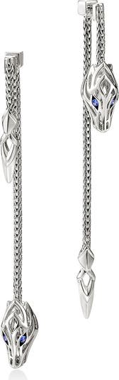 Striking sapphire eyes punctuate the serpent head of snake chain front/back earrings handcrafted in sterling silver.