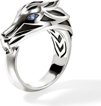 This graphic ring artisan handcrafted from sterling silver features a hand-carved Naga dragon—a legendary Balinese symbol of love, protection and prosperity.