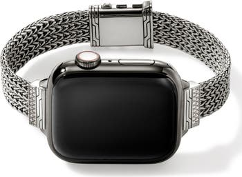 A signature woven strap brings intricate texture to this sterling silver Apple watchband handcrafted with pavé diamonds.