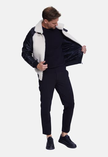Expertly crafted from genuine sheepskin and supple leather, this jacket features a plush fleece lining and durable construction designed to endure season after season. Hand-finished by skilled artisans, this men's shearling jacket offers a relaxed fit and a timeless silhouette suitable for both casual and refined occasions. The combination of soft, insulating sheepskin and smooth leather sleeves delivers warmth and comfort, while the ribbed cuffs and hem provide a secure fit. Details include a sturdy front zipper, a wide fleece collar with buckle strap, and angled zip pockets for practicality. Made in Turkey and imported, this jacket is shipped from the USA. Ideal for those seeking a classic men's leather and sheepskin jacket with enduring style and quality.