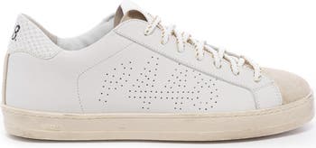 The John Dune's all-over white leather is complemented by a beige leather tongue and toe and a white embossed leather heel tab. With a hand-distressed sole and white and gold cotton laces, this pair is easy, versatile and perfectly lived-in.