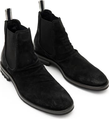 Slouchy leather adds rugged charm to a dapper Chelsea boot furnished with an easy-on heel loop and grippy tread.