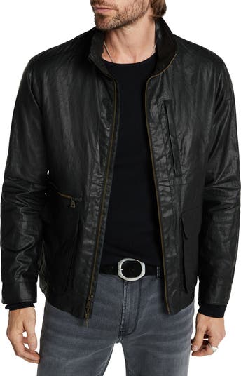 A coated effect adds swagger to a casual jacket made from lightweight linen.