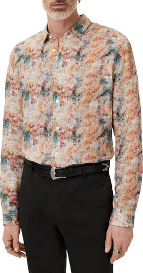 Unleash your inner artist in this soft linen shirt alive with a brilliant paint motif that seems to come straight from the studio. The tailored slim fit keeps you looking sharp while the vibrant pattern brings the drama.