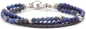 Lapis stones add natural charm to this multistrand bracelet with macabre appeal.
