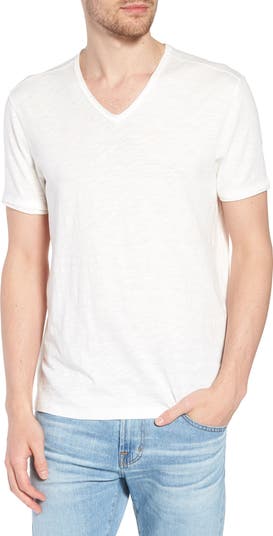 Cotton slub jersey textures this relaxed T-shirt detailed with layered short sleeves and raw-cut edging at the V-neck.