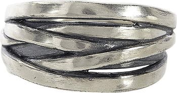 Add a rugged touch to your wardrobe with this interlocked ring crafted from weathered sterling silver.