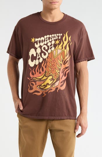 Burnin' boots on this cotton-blend T-shirt underscore the legendary image of fan-favorite Johnny Cash.