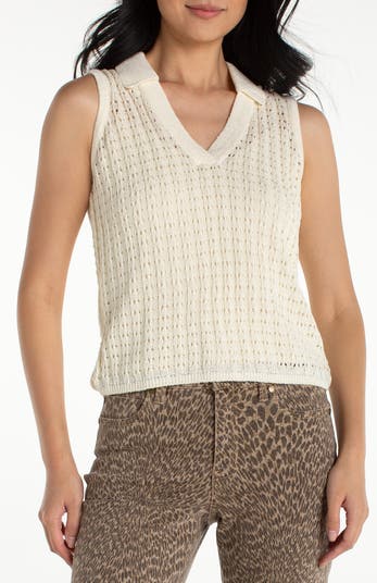 Airy open stitching adds breathable charm and a semisheer effect to this soft sweater-vest