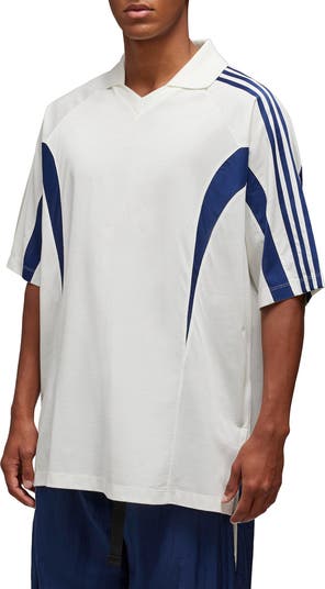 Look fetching on the field or pub circuit in this lightweight soccer-inspired T-shirt made with a sporty johnny collar.