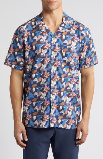 Abstract trillium flowers float across a camp shirt woven from cotton and modal for a soft, drapey feeling.