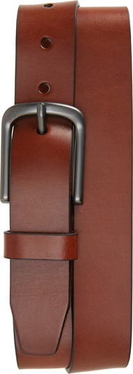 A rich leather belt with a flat edge offers a clean, casual style that's completed with a gunmetal-finished buckle.