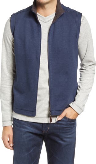 This low-profile vest in a soft and smooth cotton-blend knit reverses from one heathered shade to another for two equally versatile looks.