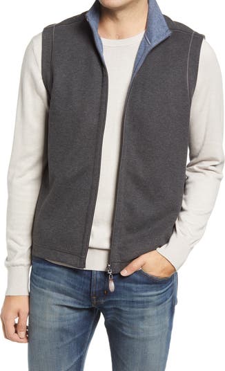 This low-profile vest in a soft and smooth cotton-blend knit reverses from one heathered shade to another for two equally versatile looks.