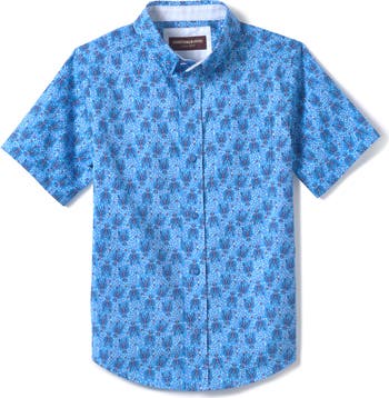 Tiny lobsters enliven this kid-sized sport shirt crafted from crisp cotton poplin and framed with short sleeves.