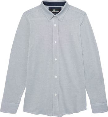 Button-up styling delivers versatile good looks to this shirt crafted from soft stretch fabric that wicks moisture and resists wrinkles.