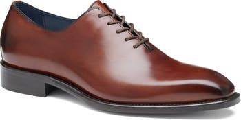 Hand-stained Italian leather buffed to a high shine highlights the masterful craftsmanship of this plain-toe oxford fitted with a rubber-injected forepart for enhanced flexibility and traction.
