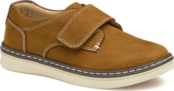 Crisp contrast stitching traces the dapper silhouette of a pint-size slip-on dress shoe made with oiled nubuck leather and a cushy memory foam footbed.