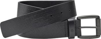 Slim scoring runs end-to-end on a belt made of soft leather with a classic roller buckle cinching its casual, easy-wearing versatility.
