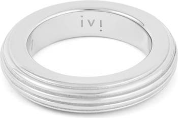 Textured grooves encircle this Italian-crafted band ring shining in rhodium plating.