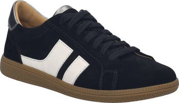 Contrasting stripes play up the sporty style of a lace-up sneaker complete with a comfort-cushioned footbed.